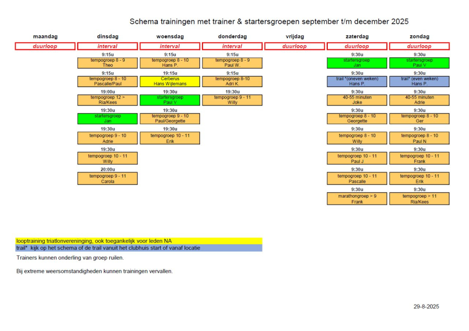 • Trainingstijden Lopers